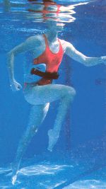 bearing activity that consists of performing a running motion in the deep end of a swimming pool. The purpose is to optimize cardiovascular and muscular conditioning, while minimizing joint, bone, muscular, tendon and ligament stress. The forgiving, therapeutic qualities of water provide a safe, effective environment for exercise.